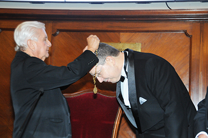 Em cerimônia concorrida, com o anfiteatro lotado, foi empossado, ontem, 5, o fisiologista, pesquisador e professor Walter Araújo Zin como o mais novo imortal da Academia Nacional de Medicina. Conduzido ao recinto por uma comissão formada pelos acadêmicos Sérgio Augusto Pereira Novis, Marcello André Barcinski, Eliete Bouskela, Oswaldo Moura Brasil do Amaral Filho, Antonio Egídio Nardi e Carlos Alberto de Barros Franco, o Dr. Zin recebeu as insígnias acadêmicas das mãos do presidente da ANM, Professor Pietro Novellino. “Era o salto que me faltava na carreira”, disse o novo acadêmico.