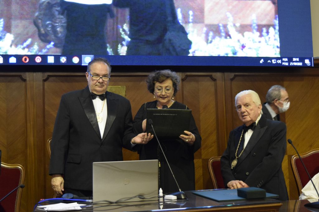 Em seu discurso emocionante de saudação, o Acadêmico Cláudio Tadeu Daniel-Ribeiro ressaltou a importância da Drª Margareth na ciência e na Fiocruz, instituição que ambos fazem parte e trabalharam juntos em pesquisas iniciais sobre a Covid-19. O Acad. Cláudio Tadeu Daniel-Ribeiro ainda aborda a paixão pela literatura e conta que a medicina quase perdeu a nova acadêmica para a faculdade de direito, e essa escolha é o que ela considera “o maior marco da sua carreira”. Essa trajetória é excepcional dentro e fora do país, e durante a pandemia, ela teve um papel fundamental para que a população tivesse acesso a informações verdadeiras sobre vacinas, cuidados e o Covid-19. O Acadêmico reafirmou que a Drª Margareth Dalcolmo se tornou uma figura conhecida em todo o país como o rosto da tranquilidade e segurança sobre a doença.