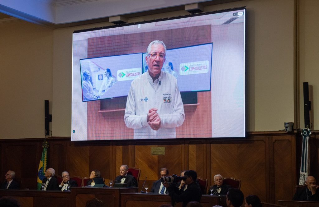 A cerimônia também contou com uma mensagem em vídeo do Ministro da Saúde, Alexandre Padilha, que saudou a nova diretoria e parabenizou a ex-Presidente Eliete Bouskela pelo trabalho realizado. Em sua fala, o ministro destacou a importância da Academia Nacional de Medicina no debate científico e na formulação de políticas públicas.